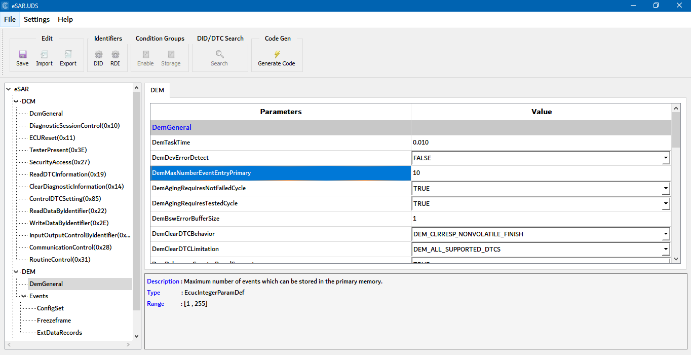 ElectRay’s UDS Configuration & Code Generation Tool provides a structured and intuitive environment to configure UDS diagnostics with confidence. Engineers can define sessions, security access, DIDs, routines, communication parameters, DTC’s and fault memory and with full control, ensuring consistent and accurate implementation across ECU platforms.
