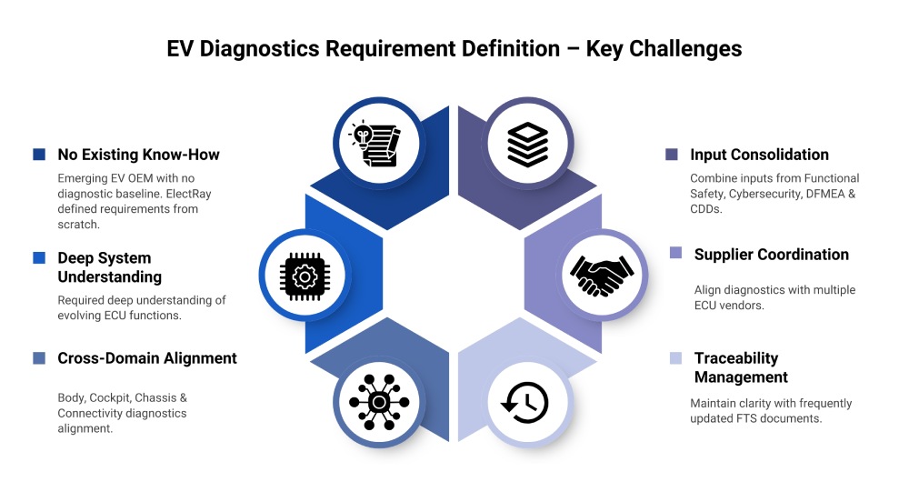 • Lack of Existing Know-How: As an emerging EV OEM, there was no diagnostic or domain baseline available, requiring ElectRay to define requirements from the ground up.