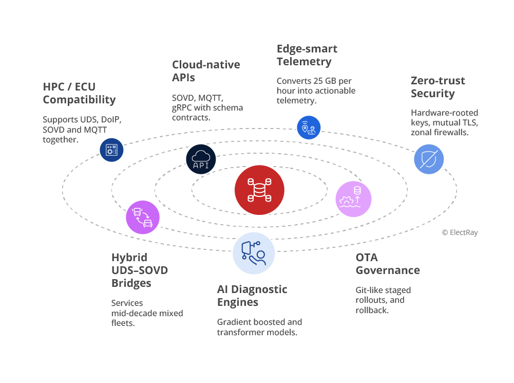 2. Cloud-native APIs: SOVD, MQTT, gRPC with schema contracts.